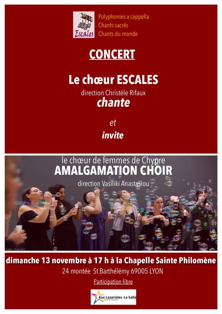à 17H à la Chapelle Sainte Philomène du centre scolaire Aux Lazaristes – La Salle24 montée Saint Barthélémy – 69005 LYON
