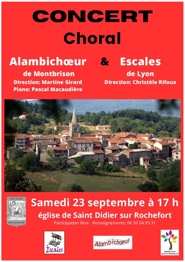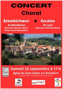 2 Choeurs: Alambichoeur de Montbrison et Escalesà 17h dans l’église de Saint Didier sur Rochefort 42111