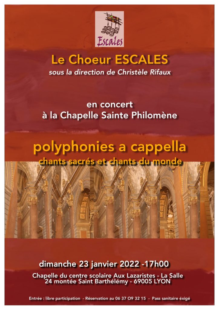à 17h à la Chapelle Sainte Philomène24 montée Saint Barthélémy 69005 Lyon