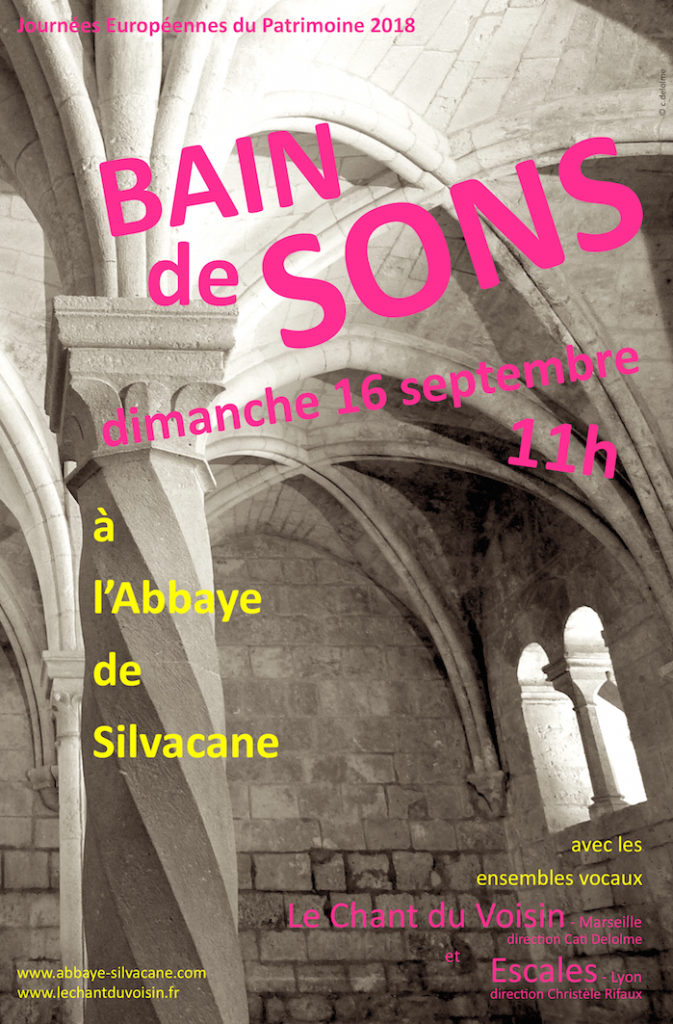 Bain de sons à l’Abbaye de Silvacaneperformance vocale avec les ensemble vocaux :le Chant du Voisin (Marseille)et Escales (Lyon)