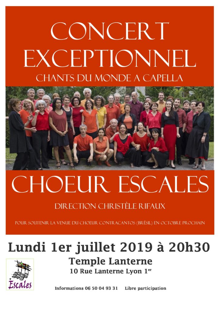 Concert Contracantos et ContraventosDirection: Flavio Medeiros et Pollyana MonteiroTemple Lanterne 10 rue Lanterne Lyon 1er